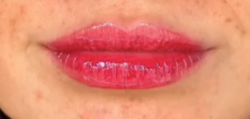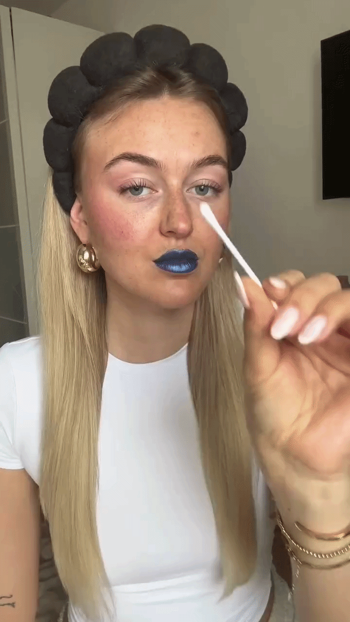 Torka sedan av läpparna med en fuktig trasa tills alla blåaktiga rester av aktivatorn är borta. Upprepa appliceringen efter önskemål för att intensifiera färgen.