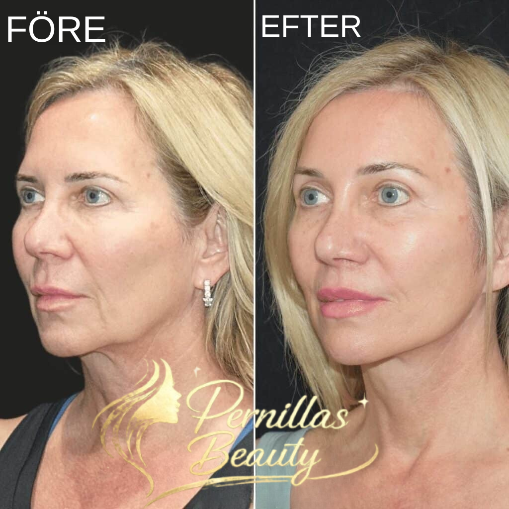 Efter 35 minskar kollagenet snabbt – det är bevisat inom dermatologisk forskning. Mindre kollagen = lösare hud, djupare rynkor och sämre definition i käklinjen.